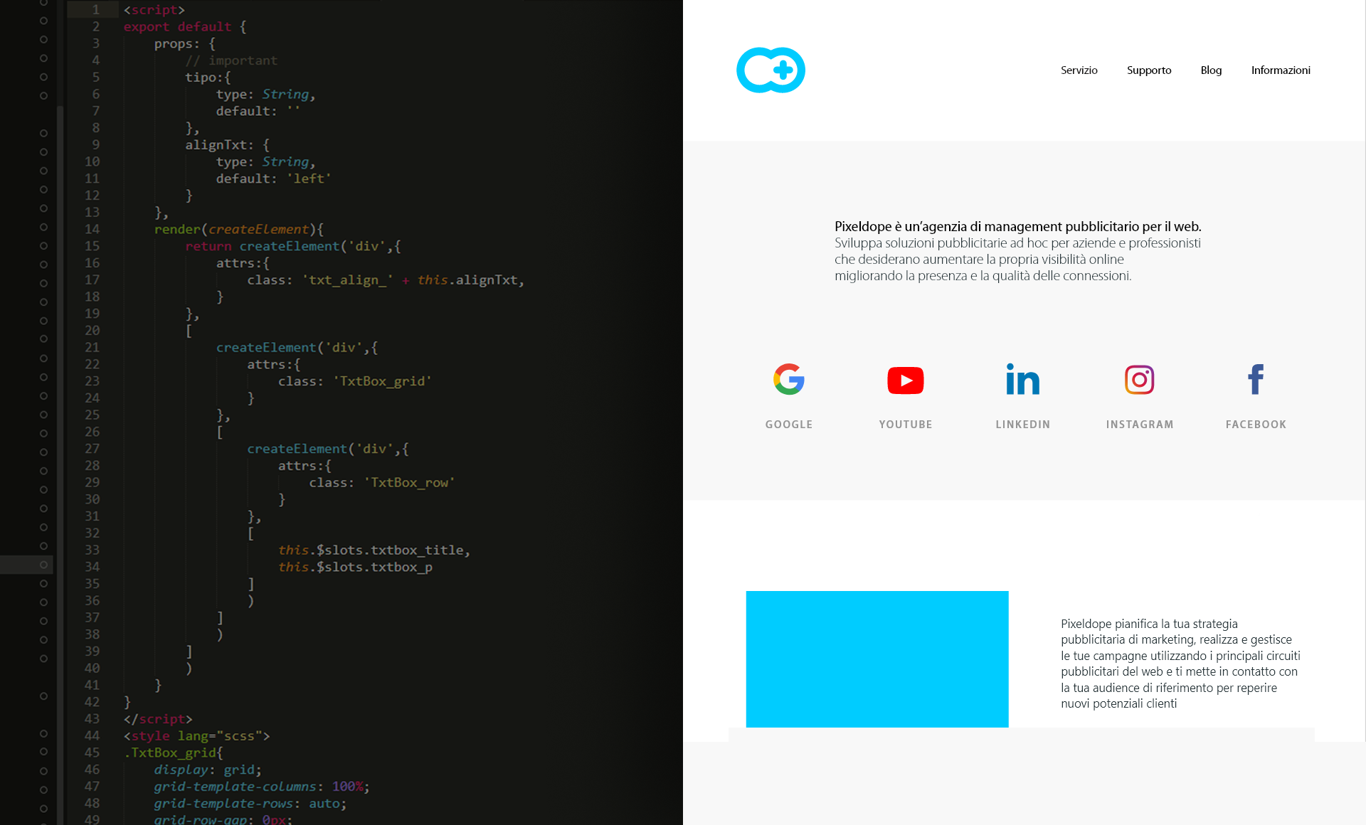 Alchemical Pixel progetta processi produttivi definiti nei singoli passaggi, contemplando proattività e ciclicità di servizio per valorizzare ogni singolo aspetto del sito web. Il sito web così progettato diventa uno strumento plastico e in continuo mutamento, una rappresentazione fedele della tua azienda che evolve nel tempo.